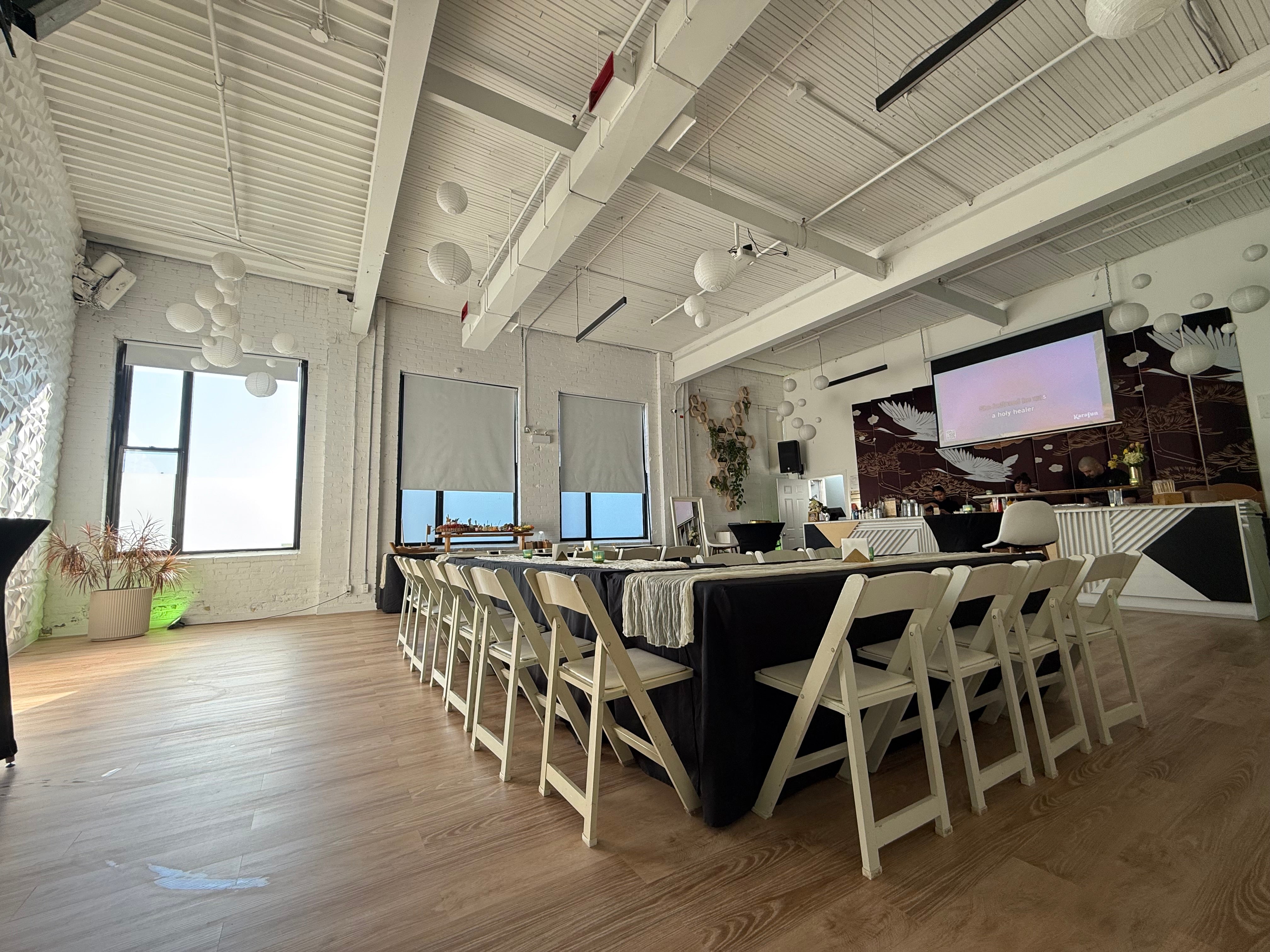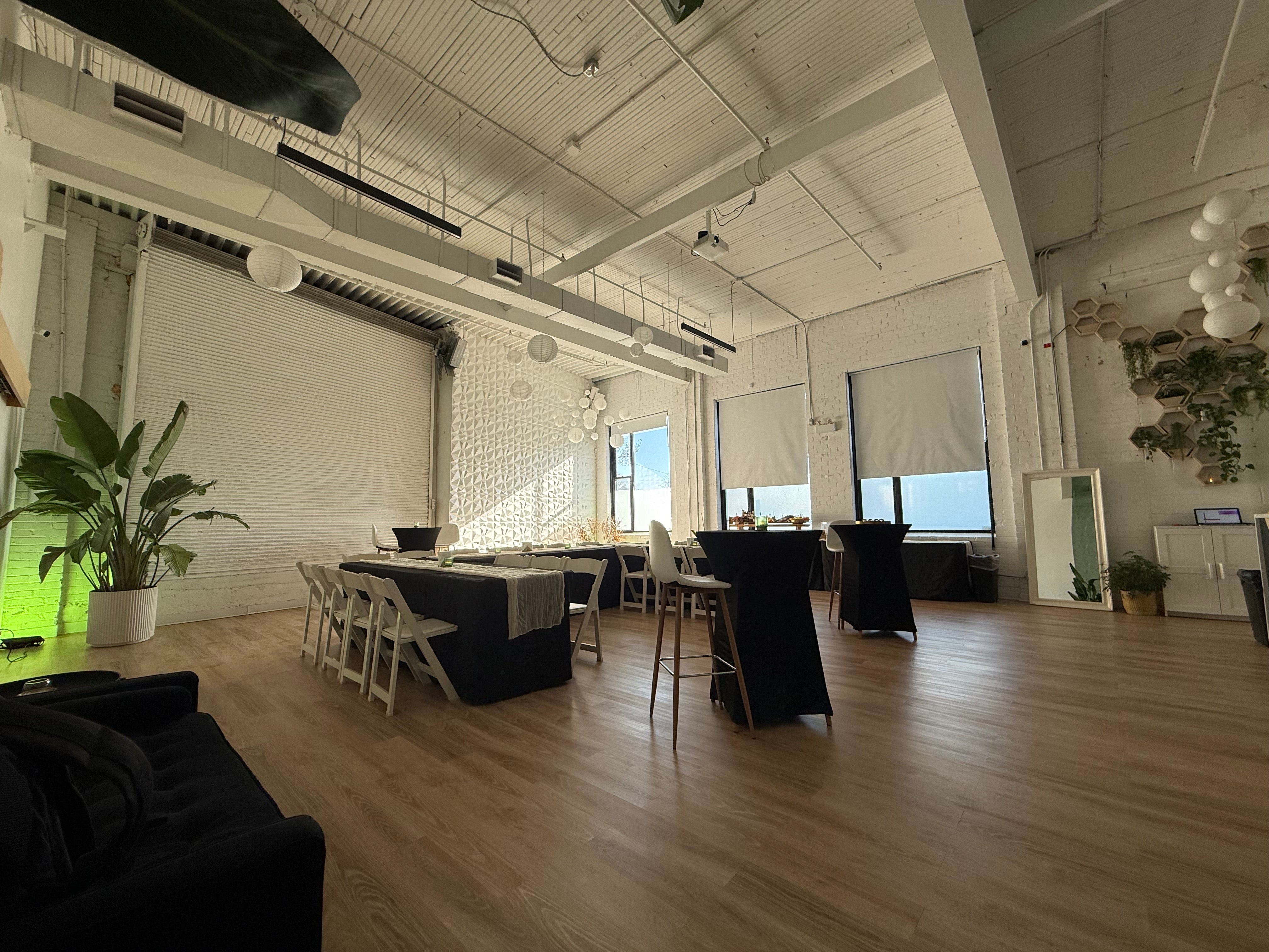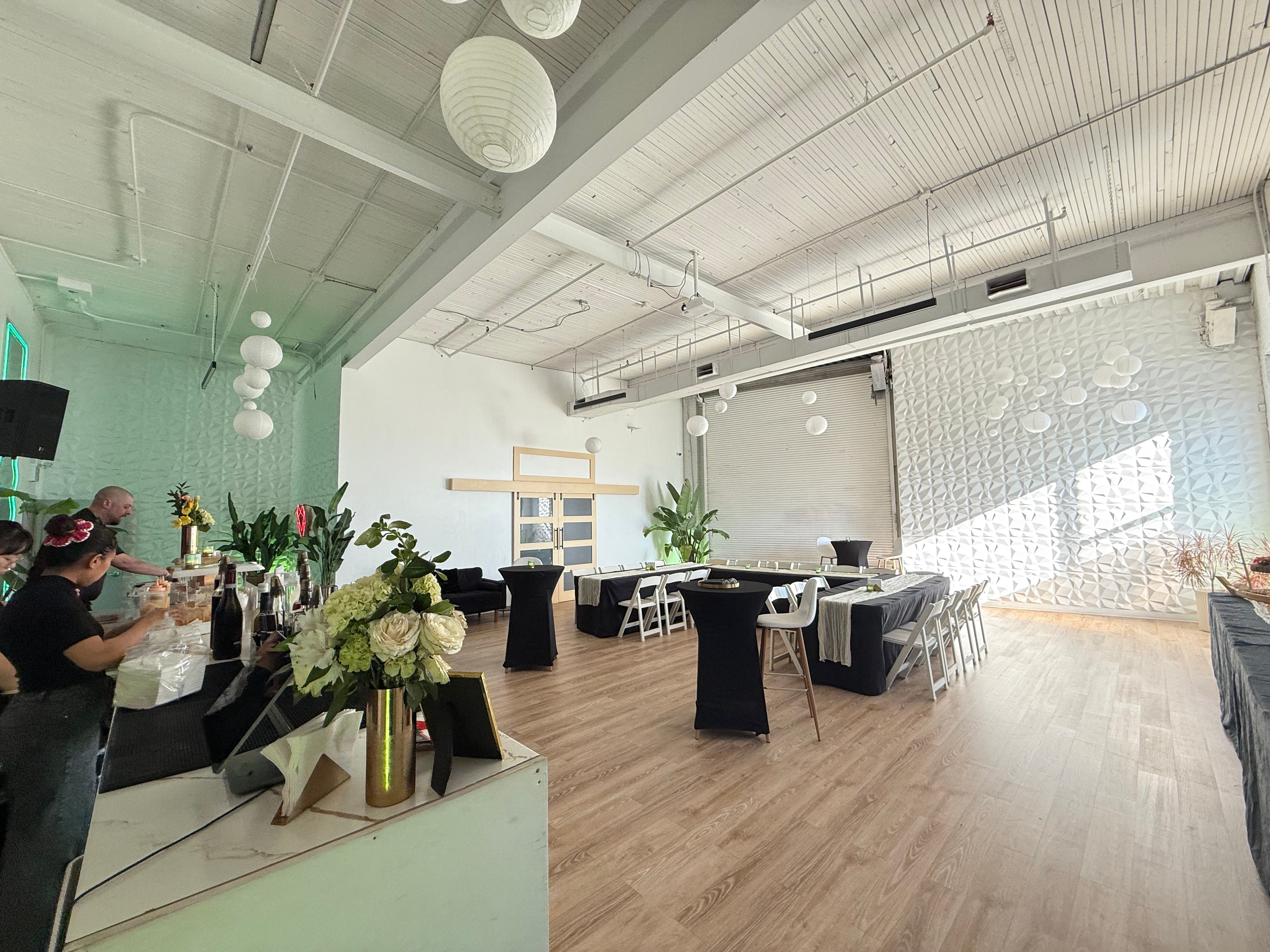 This versatile 1,600 s.f. magically lit open space is ideal for weddings, ceremonies, photography, parties, birthdays, classes, corporate events and so much more. 16 foot ceilings and a bright concept adapts to any event