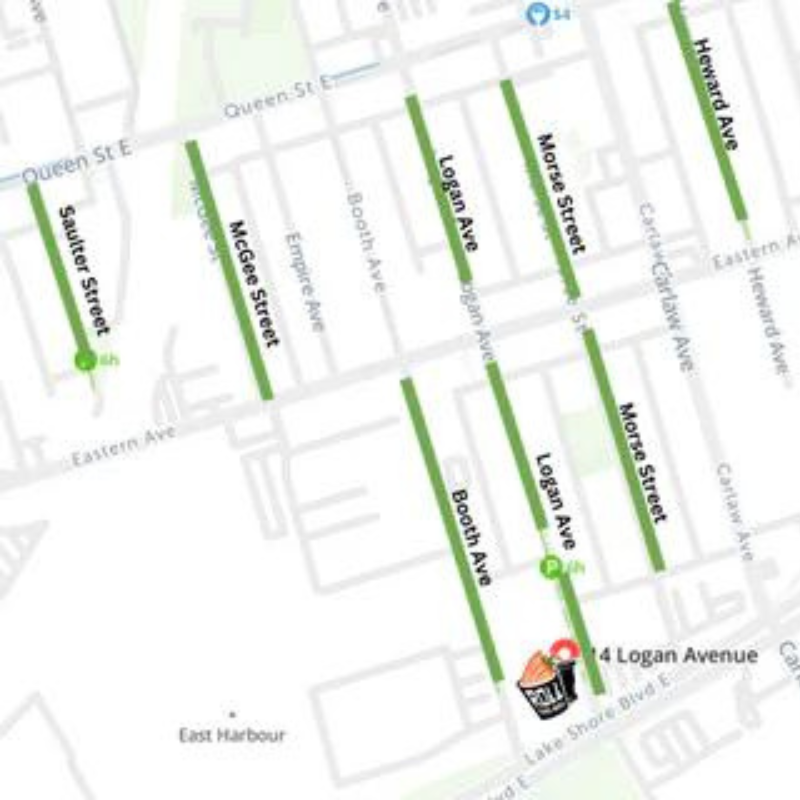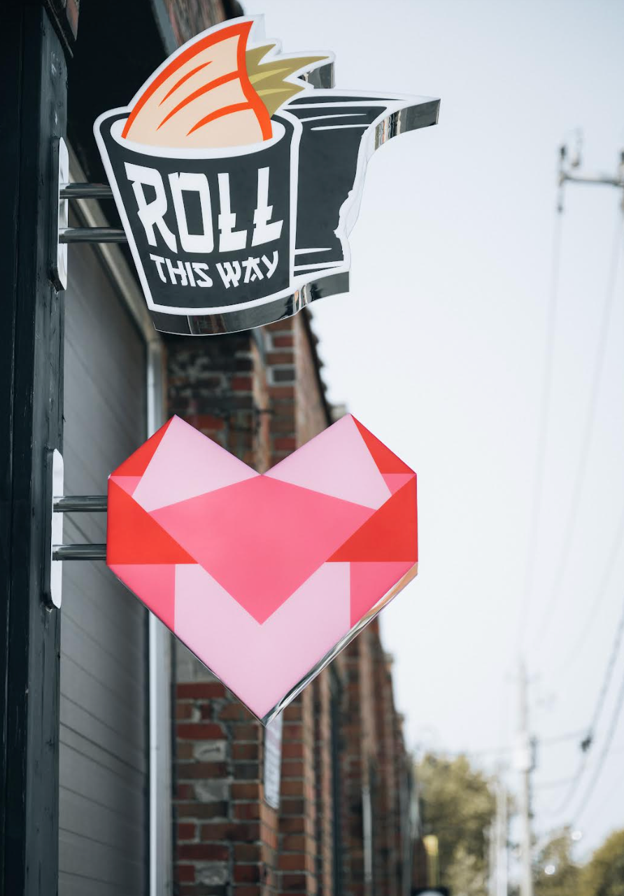 Look for the 2 blade signs at 14 Logan Ave (our Roll This Way logo and the big Pink Origami Heart. We are located on Logan Ave, at Lakeshore Blvd. (same building as Reid's Gin Distillery). If the Logan Ave. door is locked, check our second entrance on the south side of the building (inside of the gated gravel parking lot) or call 855-447-8744.